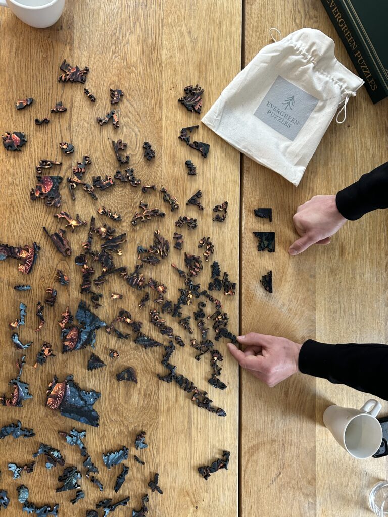 We craft heirloom quality jigsaw puzzles with environmentally sustainable materials incorporating uniquely designed pieces that spark joy and foster connection through wholesome, mentally stimulating fun. Our puzzles aim to offer moments of rejuvenation, as we live in a day and age saturated by screens, inviting folks a return to play, creativity, and focus.